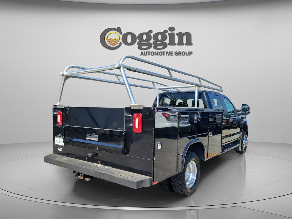 2022 Ford F-350 Super Duty XL 4x4 Crew Cab DRW finished in Agate Black with Medium Earth Gray cloth interior, powered by the proven 7.3L DEVCT NA PFI V8 engine paired to a 10-speed automatic transmission. Built on a 179-inch wheelbase and equipped with a full utility/service body, this truck is fully upfitted and ready to go straight to work across Jacksonville, Orange Park, St. Augustine, and throughout Northeast Florida. This is not just a chassis cab it already features a professionally installed full utility body, giving you secure, organized, and lockable side compartments for tools, equipment, and materials. The integrated storage system allows contractors, electricians, plumbers, HVAC technicians, municipal fleets, and service professionals to operate efficiently without additional upfitting costs or downtime. Its a turnkey commercial solution ready to generate revenue immediately. Under the hood, the 7.3L V8 gas engine delivers outstanding torque and long-term durability, making it ideal for heavy payloads and demanding job sites. Paired with a 4.30 limited-slip rear axle, dual rear wheels, and a 14,000 lb GVWR package, this F-350 is engineered for serious hauling stability and confidence under load. The extra heavy-service suspension further reinforces its work-ready capability. This truck is equipped with factory upfitter switches and an upfitter interface module, making it easy to control auxiliary lighting, compressors, inverters, or other service body accessories. The Trans Power Take-Off provision allows for hydraulic or PTO-driven equipment integration perfect for vocational builds that require cranes, lift systems, or specialty tools. Work-focused features continue with a Trailer Brake Controller, trailer tow wiring harness, electronic shift-on-the-fly 4x4, manual locking hubs, hill start assist, AdvanceTrac with Roll Stability Control, dual batteries, and a heavy-duty 397-amp alternator to support additional electrical demands. The utility lighting system and exterior backup alarm enhance job site safety and visibility. Inside the Crew Cab, youll find durable cloth 40/mini-console/40 seating, a 60/40 flip-up rear bench for additional interior storage flexibility, black vinyl flooring for easy cleanup, air conditioning, SYNC with AppLink, FordPass Connect, tilt and telescoping steering wheel, and practical work-oriented ergonomics designed for long days on the road. For businesses in Jacksonville and the surrounding North Florida markets looking for a fully equipped, heavy-duty service truck with a full utility body already installed, this 2022 Ford F-350 Super Duty XL 4x4 delivers strength, storage, electrical capability, and true job-site readiness from day one., 4WD.