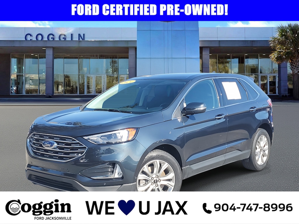 Priced below KBB Fair Purchase Price! Low-Mileage Luxury: 2024 Ford Edge Titanium AWD Only 33,585 Miles! Upgrade every drive with this well-equipped 2024 Ford Edge Titanium AWDa sophisticated, one-owner SUV that blends modern style, confidence-boosting safety, and everyday comfort. With just 33,585 miles, this Edge delivers the refined performance and technology Jacksonville buyers love, whether youre cruising to the beaches, commuting to downtown, or heading south to Daytona or Tampa for a weekend getaway. Key Features Youll Love Powerful 2.0L EcoBoost Engine & 8-Speed Auto Smooth, efficient performance with confident passing power Intelligent All-Wheel Drive Added traction for Florida rainstorms or Georgia road trips Ford Co-Pilot360 Safety Suite Lane-Keeping, Blind-Spot Info System, Pre-Collision Assist with Auto Emergency Braking B&O 12-Speaker Premium Audio Concert-quality sound for every playlist SYNC 4A with 12 Touchscreen & Wireless Apple CarPlay/Android Auto Easy connectivity without the clutter Heated/Leather-Trimmed Front Seats & Heated Steering Wheel Stay comfortable year-round Hands-Free Power Liftgate Load groceries or luggage with ease Wireless Charging Pad & USB-C/USB-A Ports Keep devices powered on the go Stunning Stone Blue Metallic Exterior Stand-out style with upscale Titanium accents Why Buy from Coggin Ford Jacksonville Guest-Centric Approach We treat every shopper like family, from Saint Augustine to Southern Georgia Transparent, Upfront Pricing No hidden fees, no surprises Comprehensive Multi-Point Inspection Confidence in every pre-owned vehicle Complimentary CARFAX Report Full history for peace of mind Trusted Local Service Serving Northeast Florida drivers for years with expert care Searching for a Used SUV in Jacksonville, an affordable SUV near St. Augustine, or a Ford Edge for sale near me? This 2024 Edge Titanium AWD delivers premium comfort, advanced tech, and low milesmaking it a standout for families, commuters, and adventure seekers across Northeast Florida, Daytona, Tampa, Kingsland, and beyond. Schedule your test drive today at Coggin Ford Jacksonville and experience the perfect mix of luxury, efficiency, and capability in this exceptional 2024 Ford Edge Titanium AWD!, AWD, Equipment Group 300A.