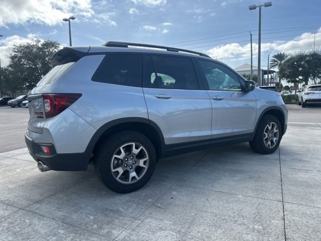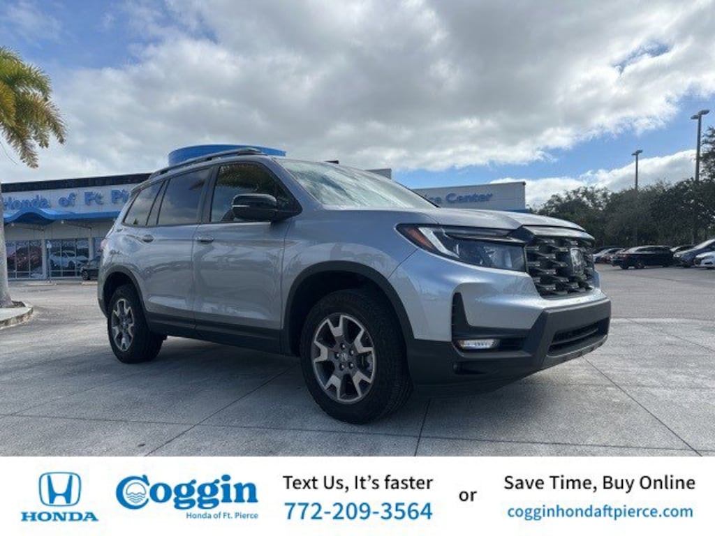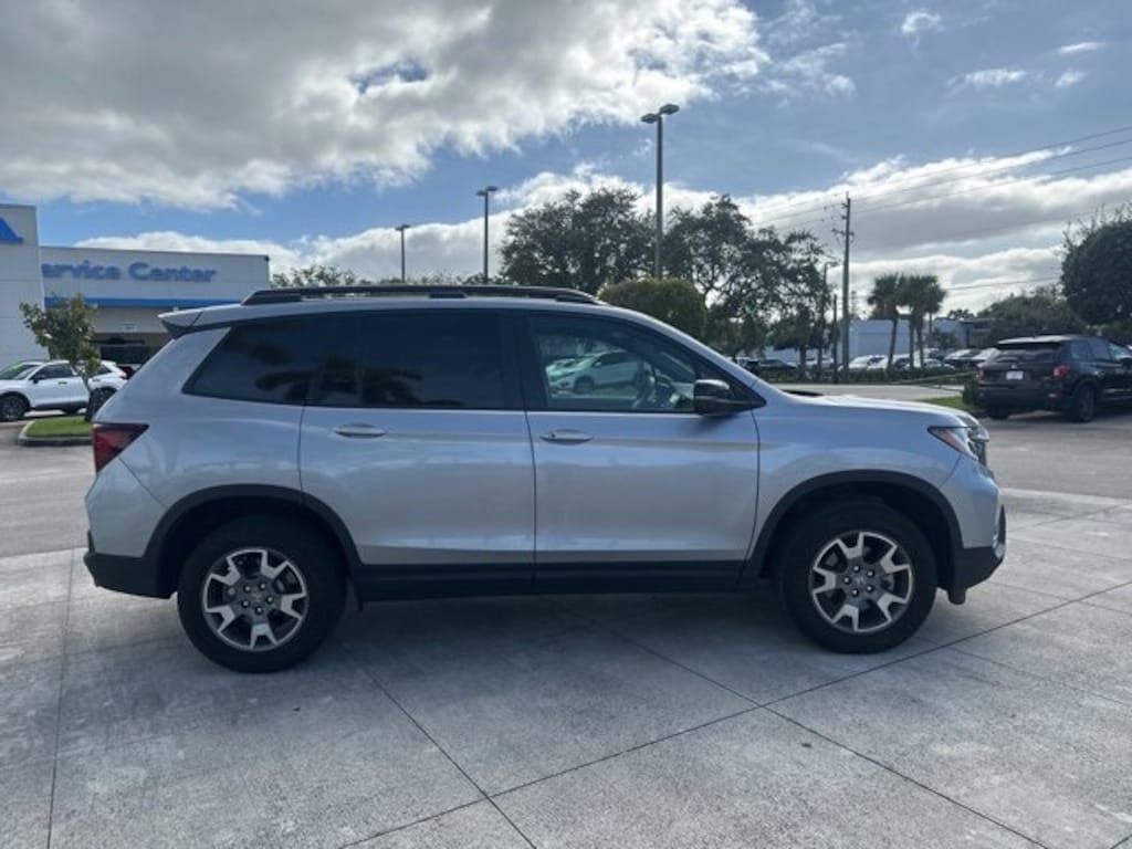2023 Honda Passport TrailSport Adventure Ready Certified Quality Low Miles Stock #: COB260434A VIN: 5FNYF8H62PB044263 Odometer: 17239 miles Conquer every drive in confidence with this 2023 Honda Passport TrailSport a rugged yet refined SUV built for life on and off the road. Finished in Lunar Silver Metallic with a Black interior this HondaTrue Certified vehicle combines TrailSport styling all-wheel-drive performance and advanced comfort for the perfect blend of adventure and everyday practicality. Key Features: **HondaTrue Certified Enjoy warranty coverage roadside assistance and a detailed multi-point inspection for total peace of mind** **Powerful 3.5L V6 i-VTEC Engine Delivers smooth performance and confident towing capability** **Intelligent AWD System Provides added traction and stability on wet or uneven terrain** **TrailSport Design Exclusive rugged styling orange contrast stitching and off-road-tuned suspension** **Premium Interior Leather-trimmed seats heated front seats and a spacious 5-passenger cabin** **Smart Technology 8-inch Display Audio touchscreen with Apple CarPlay & Android Auto** **Safety You Can Trust Honda Sensing suite with Adaptive Cruise Control Collision Mitigation Braking and Lane Keeping Assist** **Low Mileage Only 17239 miles locally driven and in excellent condition** Built to handle both Florida highways and backroad adventures this Passport TrailSport offers the perfect combination of durability comfort and Honda reliability. Now available at Coggin Honda of Fort Pierce where capability meets confidence with every HondaTrue Certified vehicle.. CARFAX One-Owner. Clean CARFAX. Certified. Recent Arrival! **HONDATRUE CERTIFIED** Odometer is 13833 miles below market average! Priced below KBB Fair Purchase Price!AWD 9-Speed Automatic 3.5L V6 24V SOHC i-VTECHondaTrue Certified Details: * Vehicle History * Warranty Deductible: $0 * Limited Warranty: 24 Month/100000 Mile (whichever comes first) after new car warranty expires or from certified purchase date * Vehicles purchased within New Vehicle Limited Warranty period: extends New Vehicle Limited Warranty to 5 years*/60000 miles*. Honda Care Roadside Assistance for 2 year/100000 miles (whichever occurs first). Up to two complimentary oil changes within the first year of ownership. SiriusXM 90-Day Trial. * Powertrain Limited Warranty: 84 Month/100000 Mile (whichever comes first) from original in-service date * Transferable Warranty * Roadside Assistance * 182 Point Inspection