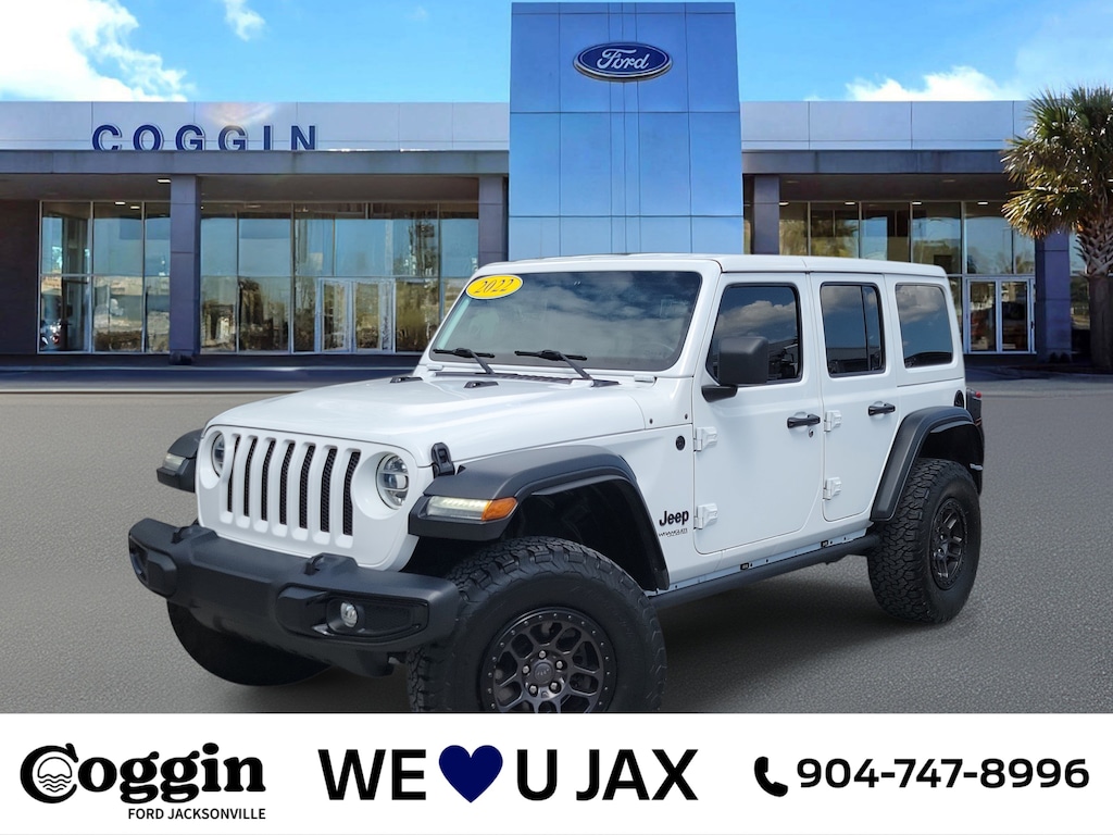 2022 Jeep Wrangler Unlimited High Tide Edition Loaded & Adventure Ready Check out this 2022 Jeep Wrangler Unlimited High Tide Edition with only 50,000 milesfully loaded with the features Jeep fans love. Powered by a 3.6L V6 with 8-speed automatic, this Wrangler blends daily comfort with serious trail capability. Equipped with the High Tide Package plus Premium Audio, Cold Weather Group (heated seats & wheel), Technology Group, Trailer Tow & Heavy Duty Electrical Group, and the Convenience Group, this Wrangler is built for Florida adventureswhether its cruising Jacksonville Beach or tackling Ocalas off-road trails. Key Features: 3.6L V6 with 8-speed automatic transmission High Tide Edition with convertible hardtop & LED lighting 35 all-terrain tires, off-road suspension, 4.56 rear axle ratio 8.4 touchscreen with navigation, Apple CarPlay, premium audio Heated front seats & steering wheel, remote start Trailer tow package with hitch & heavy-duty electrical system Convenience Group with universal garage opener Back-up camera & advanced safety features Only 50,000 miles Dont miss this rare, well-equipped Wranglerloaded with options, priced to move. Call Coggin Ford Jacksonville today to schedule your test drive..