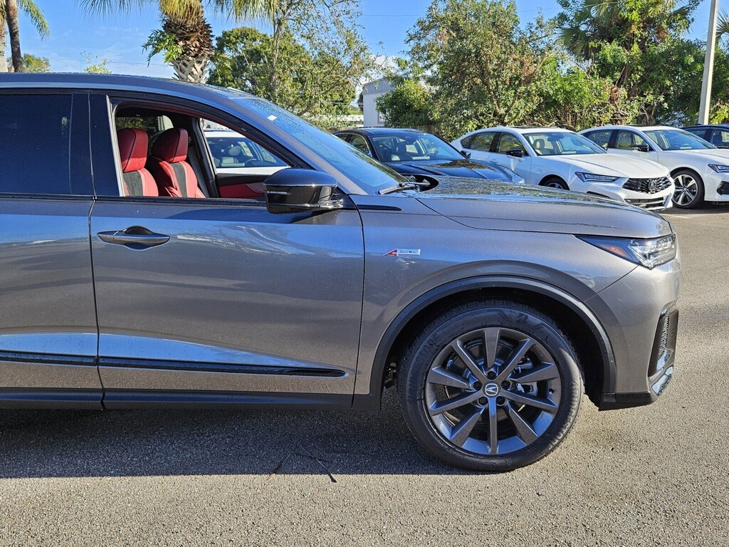 Liquid Carbon Metallic 2026 Acura MDX A-Spec 10-Speed Automatic 3.5L V6 SOHC i-VTEC 24V Red Leather.