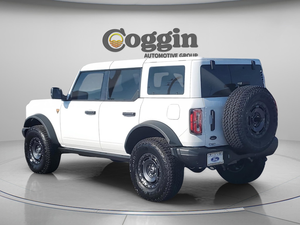 2025 Ford Bronco Badlands 4-Door 4x4 Oxford White The Ultimate Off-Road SUV The 2025 Ford Bronco Badlands 4-Door 4x4 in Oxford White is engineered for adventure, equipped with the 2.7L EcoBoost V6 engine and 10-speed automatic transmission. Built for drivers who demand extreme off-road capability without sacrificing comfort, this Bronco comes loaded with upgrades that make it trail-ready from day one. Key Highlights Oxford White Exterior with 17 Dark Carbon Gray Painted Aluminum Wheels 2.7L EcoBoost V6 Engine 315 HP and serious torque for rugged performance Sasquatch Package 17 beadlock-capable wheels, 35 LT315 all-terrain tires, electronic-locking front & rear axles, high-clearance suspension, and advanced off-road gearing Rock Rails & Sound Deadening Headliner added toughness and comfort Hard Top (Body Color Painted) with Storage Bag removable for open-air driving Lux Package 12 LCD touchscreen with SYNC 4, 360-degree camera, adaptive cruise control, premium 12-speaker audio, and wireless charging Remote Start System for added convenience Ford Co-Pilot360 Safety Features Pre-Collision Assist with AEB, Rear View Camera, Lane-Keeping Assist, AdvanceTrac with RSC stability control Fuel Economy 18 MPG combined (17 city / 18 highway) impressive for an SUV with this level of power and off-road capability Why Buy from Coggin Ford Jacksonville At Coggin Ford Jacksonville, we proudly serve Jacksonville, St. Augustine, Daytona, St. Johns, Ponte Vedra, Yulee, Green Cove Springs, and Southern Georgia. Backed by the We Love You Jax Promise your assurance of transparency, care, and customer satisfaction Large selection of new Bronco & Bronco Sport SUVs Expert team ready to match you with the perfect Bronco for your lifestyle The 2025 Ford Bronco Badlands 4-Door 4x4 in Oxford White is built for drivers who want to go anywhere, conquer anything, and look good doing it. Test drive yours today at Coggin Ford Jacksonville..