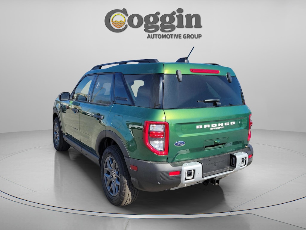 2025 Ford Bronco Sport Big Bend 4x4 with Black Diamond Off-Road Package Built for drivers who want everyday comfort with added trail-ready confidence, this new 2025 Ford Bronco Sport Big Bend 4x4 delivers rugged capability, smart technology, and distinctive Bronco style in a compact SUV thats ready for more than just pavement. Finished in Eruption Green Metallic and equipped with the Black Diamond Off-Road Package, this Bronco Sport is ideal for active lifestyles that balance daily driving with weekend adventure. 1.5L EcoBoost engine paired with an 8-speed automatic transmission Advanced 4x4 system with Terrain Management System and five G.O.A.T. Modes Big Bend trim with Equipment Group 200A Black Diamond Off-Road Package with HOSS 1.0 off-road tuned suspension All-terrain tires on 17-inch carbonized gray aluminum wheels Rubberized second-row seatbacks and cargo area for easy cleanup Cargo Management System with configurable storage solutions 13.2-inch center touchscreen with SYNC 4 and enhanced voice recognition Digital instrument cluster for a modern driver display Ford Co-Pilot360 Assist+ driver-assist and safety technologies Dual-zone automatic climate control Medium Light Smoked Truffle interior with durable cloth seating Roof rack side rails and liftgate with liftglass LED headlamps and taillamps with signature lighting At Coggin Ford Jacksonville, every new vehicle purchase is built around transparency, professionalism, and respect for your time. Our experienced team delivers clear pricing, a streamlined buying process, and attentive guest care designed to ensure confidence from your first visit through ownership. This new 2025 Ford Bronco Sport Big Bend 4x4 is available now at Coggin Ford Jacksonville and is an excellent option for drivers seeking a compact SUV with authentic Bronco capability and added off-road equipment. Ideal for buyers looking for a new Ford Bronco Sport in the Jacksonville area with versatility and confidence built in. Proudly serving Jacksonville, Saint Augustine, Northeast Florida, Daytona, Tampa, Southern Georgia, Kingsland, and Starke, this Bronco Sport is ready for daily driving, coastal highways, and weekends off the beaten path..