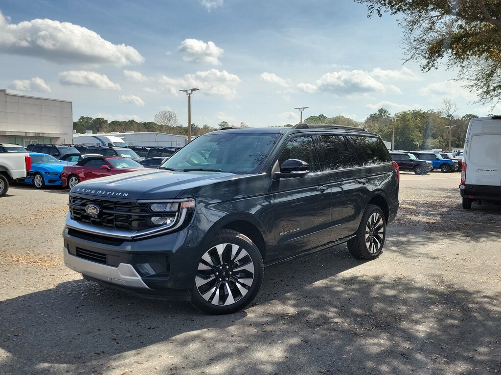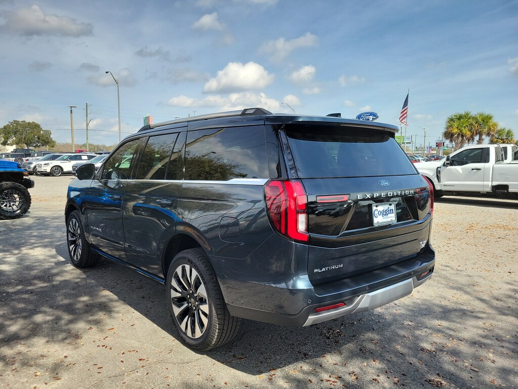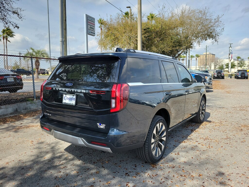 Commanding luxury meets rugged capability in this 2025 Ford Expedition Platinum 4 4 in Stone Blue Metallic. Powered by the 3.5L High-Output EcoBoost V6 and paired with a 10-speed automatic transmission, this full-size SUV delivers exceptional power, refinement, and advanced technology for the modern driver. Equipped with the Platinum Ultimate Package, Ford Co-Pilot360 Active 2.0, and BlueCruise hands-free driving, this Expedition takes comfort and confidence to new heights. Inside, Salt Crystal Gray leather-trimmed seats, a 24-inch panoramic display, and a panoramic Vista Roof make every drive first-classwhether its a family road trip or a weekend adventure. 3.5L High-Output EcoBoost V6 Engine / 10-Speed Automatic Transmission Intelligent 4WD System with Two-Speed Transfer Case Platinum Ultimate Package Multi-Contour Front Seats, 22 Ebony Bright Machined Aluminum Wheels, Premium Audio, and Advanced Tech Upgrades Ford Co-Pilot360 Active 2.0 with BlueCruise (1-Year Plan Included) 24 Panoramic Display with 13.2 Center Touchscreen Heavy-Duty Trailer Tow Package with Trailer Sway Control Panoramic Vista Roof with Power Shade Tri-Zone Automatic Climate Control and Heated/Ventilated Front Seats Heated 2nd-Row Seats and PowerFold 3rd Row Ambient Lighting and Wireless Charging Pad 360-Degree Zone Lighting and Rain-Sensing Wipers Advanced Security Pack, SOS Post-Crash Alert System, and Individual Tire Pressure Monitoring Class IV Trailer Hitch Receiver and Power Adjustable Pedals with Memory Why Buy From Coggin Ford Jacksonville: transparent pricing, multi-point inspections, complimentary CarFax reports, easy financing, and a guest-first buying experience built on long-term trust. 2025 Ford Expedition Platinum 4 4, Stone Blue Metallic, 3.5L High-Output EcoBoost, 10-Speed Auto, Platinum Ultimate Package, BlueCruise, Co-Pilot360 Active 2.0, Panoramic Vista Roof, 24 Panoramic Display, 22 Ebony Bright Wheels, Luxury Full-Size SUV, Premium Family Vehicle, 4WD.
