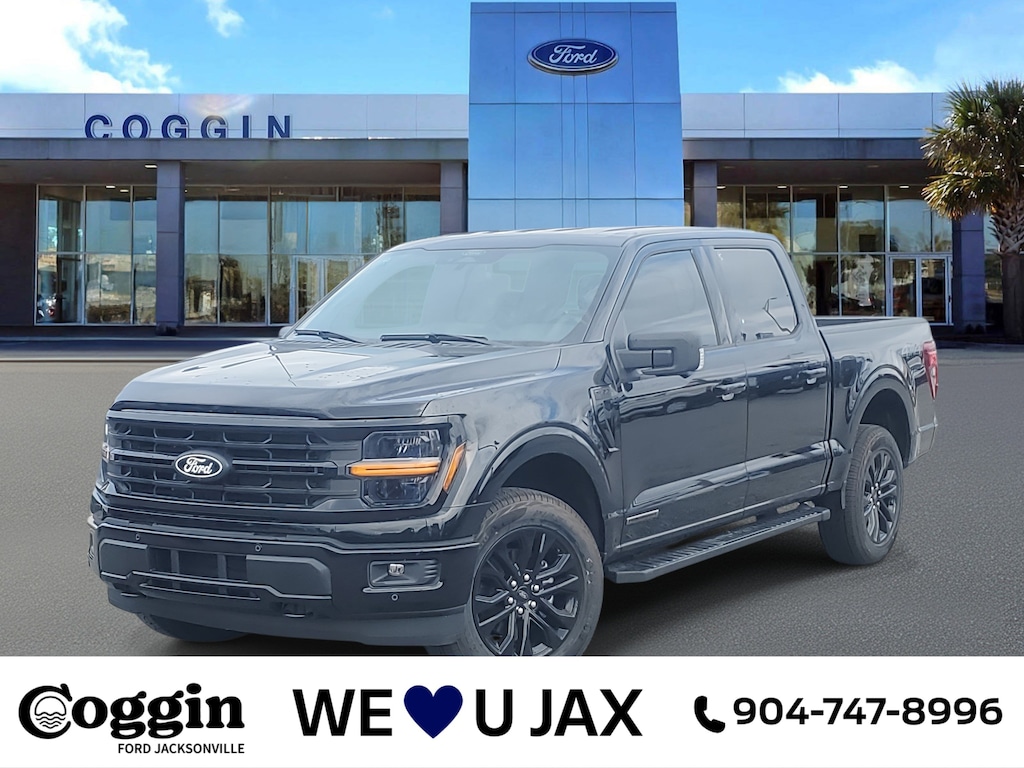 2025 Ford F-150 XLT 4x4 SuperCrew Agate Black Metallic, 3.5L PowerBoost Full Hybrid, XLT Black Appearance Package Plus Rugged capability meets hybrid innovation in this Agate Black Metallic 2025 Ford F-150 XLT 4x4. With bold styling, advanced tech, and best-in-class hybrid power, this truck is built for Jacksonville drivers who demand strength, efficiency, and head-turning presence on and off the road. XLT Series with Equipment Group 302A on 145 wheelbase 4x4 SuperCrew 3.5L PowerBoost Full Hybrid V6 with 10-speed automatic incredible torque, towing, and fuel efficiency 3.73 electronic-locking rear axle and 7,400-lb GVWR package for confident hauling XLT Black Appearance Package Plus: 20 gloss black-painted aluminum wheels, blacked-out badging, and aggressive styling Pro Power Onboard (7.2kW) power tools, tailgate parties, or job sites straight from your truck bed Bed Utility Package: tailgate step, integrated work surface, wheel well liners, and ToughBed spray-in liner Mobile Office Package with wireless charging pad and interior organization Tow/Haul Package with integrated trailer brake controller and Class IV trailer hitch 12 SYNC 4 touchscreen with Enhanced Voice Recognition and Apple CarPlay / Android Auto 12 digital productivity screen for full driver command BLIS with Cross-Traffic Alert, Lane-Keeping System, Pre-Collision Assist with AEB, and Reverse Brake Assist Zone Lighting and power-sliding rear window for added convenience Sport interior with Black Onyx cloth 40/console/40 seating and LED reflector headlamps 8-year/100,000-mile hybrid battery warranty and 5-year/60,000-mile powertrain coverage Why buy your new F-150 from Coggin Ford Jacksonville? Because we know trucks and we know Florida. From towing to tailgating, we deliver transparency, service, and unbeatable selection. Whether youre working in Jacksonville, relaxing in St. Augustine, or exploring Northeast Florida, this 2025 F-150 XLT Hybrid is ready to lead the way with power, tech, and style., 3.5L PowerBoost Full-Hybrid V6, 4WD.