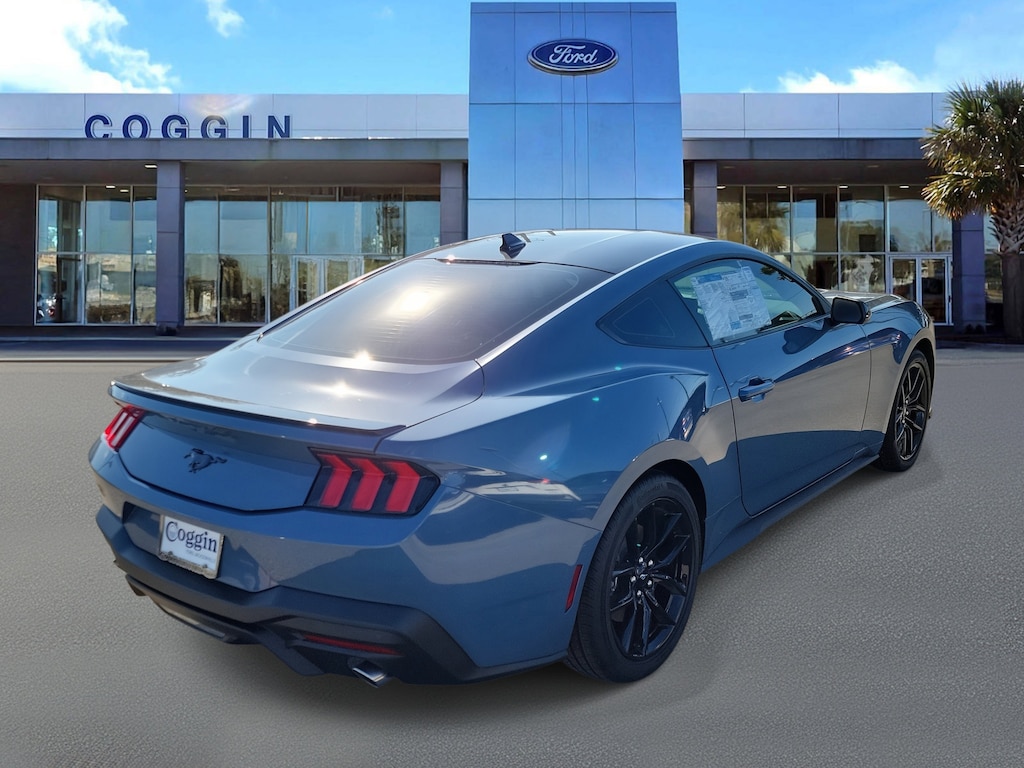 2025 MUSTANG ECOBOOST COUPE VAPOR BLUE METALLIC, 2.3L ECOBOOST, MODERN POWER WITH ICONIC PRESENCE Sleek, bold, and unmistakably Mustangthis Vapor Blue Metallic 2025 Ford Mustang EcoBoost Coupe embodies the perfect blend of performance and sophistication. Powered by a turbocharged 2.3L EcoBoost engine with a 10-speed automatic transmission, it delivers precision handling and thrilling acceleration built for Jacksonvilles streets and beyond. EcoBoost Series (Equipment Group 101A) with upgraded tech and comfort features 2.3L EcoBoost turbocharged engine paired with 10-speed SelectShift automatic transmission 3.15 limited-slip rear axle and independent rear suspension for confident performance Mustang Nite Pony Package with 19 Ebony Black-painted aluminum wheels, black-painted roof, and Blade Spoiler SYNC 4 infotainment system with 13.2 touchscreen and 12.4 digital instrument cluster Ford Co-Pilot360 with lane-keeping assist, rear parking sensors, and pre-collision braking Dual-zone automatic climate control and Smart-Charging USB ports Flat-bottom vinyl steering wheel, cloth/vinyl sport seats, and split-fold rear seat FordPass Connect with 4G Wi-Fi hotspot and remote access capability Selectable Drive Modes and Track Apps for a customizable driving experience LED signature headlamps and sequential LED taillamps for iconic Mustang styling Warranty coverage: 3yr/36k bumper-to-bumper, 5yr/60k powertrain, 5yr/60k roadside assistance At Coggin Ford Jacksonville, we make it easy to drive an American icon. With transparent pricing, fair trade-ins, and local expertise, the 2025 Mustang EcoBoost delivers the perfect mix of performance and technology from Jacksonville to St. Augustine, Daytona, and Tampa. ford mustang ecoboost for sale jacksonville 2025 mustang ecoboost vapor blue mustang ecoboost coupe 10-speed automatic mustang nite pony package mustang with sync 4 touchscreen mustang ecoboost 2.3l turbo mustang ecoboost performance coupe northeast florida mustang ecoboost st augustine mustang ecoboost daytona fl mustang ecoboost tampa mustang ecoboost kingsland ga mustang ecoboost starke fl.