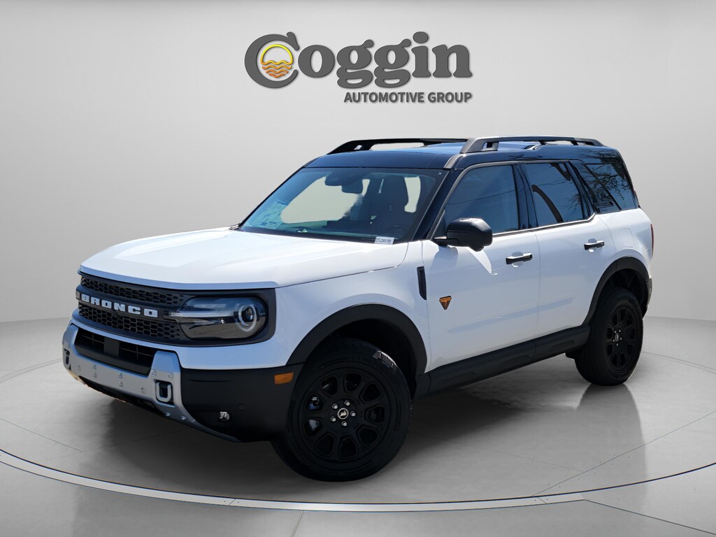 2026 Ford Bronco Sport Badlands 4x4 Built to Go Further Engineered for drivers who demand serious off-road capability in a compact, everyday-friendly SUV, this 2026 Ford Bronco Sport Badlands 4x4 is purpose-built for adventure without sacrificing comfort or technology. From challenging trails to daily commutes, it delivers confidence, durability, and smart design in every mile. Powering this Bronco Sport is a responsive 2.0L EcoBoost engine paired with an 8-speed automatic transmission and advanced 4x4 capability. The Badlands trim is the most trail-focused Bronco Sport, featuring a twin-clutch rear drive unit, Trail Control with one-pedal driving, and a 7-mode Terrain Management System designed to adapt to sand, mud, snow, and rugged terrain with ease. Key features include the Badlands Tech Package, a large 13.2-inch SYNC 4 touchscreen, digital instrument cluster, and Ford Co-Pilot360 Assist 2.0 driver-assist technology. The interior is built for adventure with dark space gray leather-trimmed seating, heated front seats, rubberized flooring, rubberized cargo area, under-seat storage, and a 400W Pro Power Onboard system. Exterior highlights include steel-plated front bumper, bash plate, front recovery hooks, LED lighting, and a painted black roof. This Bronco Sport is also equipped with a power moonroof, 17-inch matte black painted aluminum wheels, remote start, and a heated premium-wrapped steering wheel. At Coggin Ford Jacksonville, our focus is on a transparent, professional, and guest-centered buying experience. Our team is committed to helping you find the right vehicle with clear pricing, knowledgeable support, and a streamlined process designed around your needs from start to finish. If youre searching for a new 2026 Ford Bronco Sport Badlands 4x4 in Jacksonville, this SUV stands out with its off-road hardware, advanced technology, and trail-ready design. Its an excellent choice for drivers looking for a capable Bronco Sport in Northeast Florida thats ready for both adventure and everyday driving. Proudly serving Jacksonville, Saint Augustine, Northeast Florida, Daytona, Tampa, Southern Georgia, Kingsland, and Starke, this Bronco Sport Badlands is ready to take you beyond the pavement with confidence..