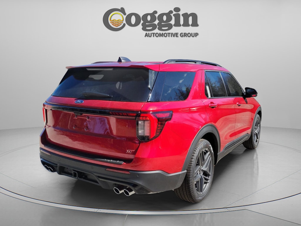 The **brand-new 2026 Ford Explorer ST 4WD** delivers thrilling performance, premium comfort, and advanced technology for drivers searching for a **new Ford Explorer ST in Jacksonville** and surrounding areas. Powered by a **3.0L EcoBoost V6** paired with a **10-speed automatic transmission**, this factory-fresh SUV offers strong acceleration, confident handling, and intelligent 4WD, making it an excellent choice for buyers looking for a **brand-new performance SUV in Jacksonville FL**. Finished in bold **Rapid Red Metallic Tinted Clearcoat**, it stands out with aggressive ST styling, **21-inch aluminum wheels**, quad-tip dual exhaust, performance brakes with red calipers, and a sport-tuned suspension. A **Class III trailer tow package with trailer sway control** adds versatility for work and recreation across Northeast Florida and Southern Georgia. Inside, the Explorer ST blends sport and luxury with **heated and ventilated front multicontour seats**, **heated second-row captains chairs**, a **power-folding third row**, ambient lighting, red ST accents, and a heated leather-wrapped steering wheel. The **Sun and Sound Package** adds a panoramic moonroof and **B&O 14-speaker sound system**. Advanced technology includes a **13.2-inch touchscreen**, **12.3-inch digital instrument cluster**, wireless Apple CarPlay and Android Auto, Wi-Fi hotspot with 5G connectivity, remote start, selectable drive modes, and a **360-degree camera**. Safety is enhanced with **Ford Co-Pilot360 Active 2.0**, AdvanceTrac with Roll Stability Control, and SOS Post-Crash Alert System, giving peace of mind for families and commuters alike. Offered by **Coggin Ford Jacksonville**, this **new Ford Explorer ST for sale near me** comes with transparent pricing, a guest-centric buying experience, and trusted factory-trained service support. Proudly serving drivers from **Jacksonville, Saint Augustine, Northeast Florida, Daytona, Tampa, Southern Georgia, Kingsland, and Starke**, this Explorer ST is **brand new, factory fresh**, and backed by Fords **3-year/36,000-mile bumper-to-bumper** and **5-year/60,000-mile powertrain warranties**, making it a powerful and refined SUV built to exceed expectations., 4WD.
