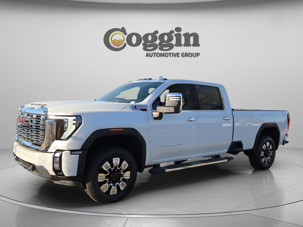 Glacier White Tricoat 2026 GMC Sierra 3500HD Denali 4WD 10-Speed Automatic Duramax 6.6L V8 Turbodiesel 10-Speed Automatic, 4WD, Atmosphere/Brownstone Leather.