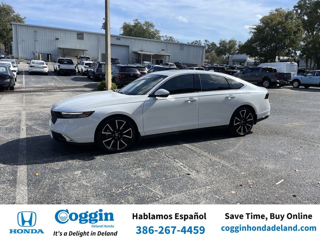 2025 Honda Accord Hybrid Platinum White Pearl FWD eCVT 2.0L I4 DOHC 16V Touring 46/41 City/Highway MPG 2.0L I4 DOHC 16V.