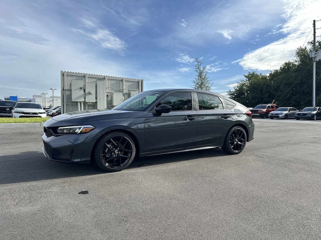 Meteorite Gray Metallic 2026 Honda Civic 4D Hatchback Sport CVT 2.0L I4 DOHC 16V 30/38 City/Highway MPG Black Artificial Leather.