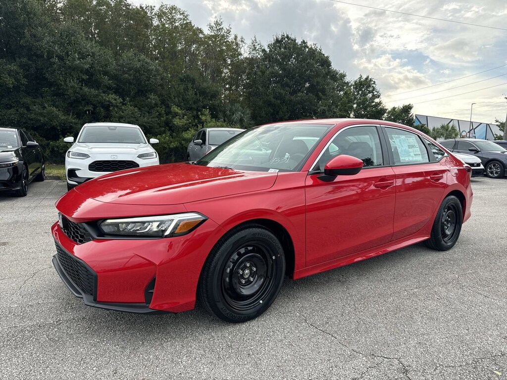 Rallye Red 2026 Honda Civic 4D Sedan LX CVT 2.0L I4 DOHC 16V 32/41 City/Highway MPG Black Cloth.