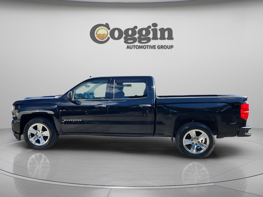 Check out all these options: Custom Convenience Package (Chevrolet Connected Access, Chevrolet w/4G LTE, Color-Keyed Carpeting w/Rubberized Vinyl Floor Mats, Electric Rear-Window Defogger, OnStar & Chevrolet Connected Services Capable, Remote Keyless Entry, Remote Locking Tailgate, and SiriusXM Satellite Radio), Custom Value Package, Preferred Equipment Group 1CX (150 Amp Alternator, Black Power Adjustable Heated Outside Mirrors, Bluetooth® For Phone, Body Color Rear Bumper w/Cornersteps, Body-Color Grille Surround, Body-Color Headlamp Bezels, Deep-Tinted Glass, Driver Information Center, Front Body-Color Bumper, Front Frame-Mounted Black Recovery Hooks, Graphite-Colored Rubberized-Vinyl Floor Covering, Manual Tilt Wheel Steering Column, Power Windows w/Driver Express Up, Rear 60/40 Folding Bench Seat (Folds Up), and Silverado Custom Trim), Trailering Package (Heavy-Duty Rear Locking Differential), 6-Speed Automatic Electronic with Overdrive, Dark Ash With Jet Black Interior Accents Cloth, 20 x 9 Chrome Clad Aluminum Wheels, 4-Wheel Disc Brakes, 40/20/40 Front Split Bench Seat, 6 Speakers, ABS brakes, Air Conditioning, All-Weather Floor Liner (LPO), Alloy wheels, AM/FM radio, Auxiliary External Transmission Oil Cooler, Brake assist, Bumpers: body-color, Cloth Seat Trim, Delay-off headlights, Driver door bin, Dual front impact airbags, Dual front side impact airbags, Electronic Stability Control, Exterior Parking Camera Rear, Front anti-roll bar, Front Center Armrest w/Storage, Front License Plate Kit, Front reading lights, Front wheel independent suspension, Fully automatic headlights, Heated door mirrors, Heavy Duty Suspension, High-Intensity Discharge Headlights, Illuminated entry, Low tire pressure warning, Occupant sensing airbag, Overhead airbag, Overhead console, Passenger door bin, Passenger vanity mirror, Power door mirrors, Power steering, Power windows, Premium audio system: Chevrolet MyLink, Radio data system, Radio: AM/FM w/7 Diagonal Color Touch Screen, Rear reading lights, Rear seat center armrest, Rear step bumper, Rear Under-Seat Composite Storage Bin (LPO), Speed control, Speed-sensing steering, Split folding rear seat, Tachometer, Tilt steering wheel, Traction control, Trip computer, Variably intermittent wipers, and Voltmeter. Priced below KBB Fair Purchase Price! 2018 Chevrolet Silverado 1500 Black 6-Speed Automatic Electronic with Overdrive 4D Crew Cab EcoTec3 5.3L V8 RWD