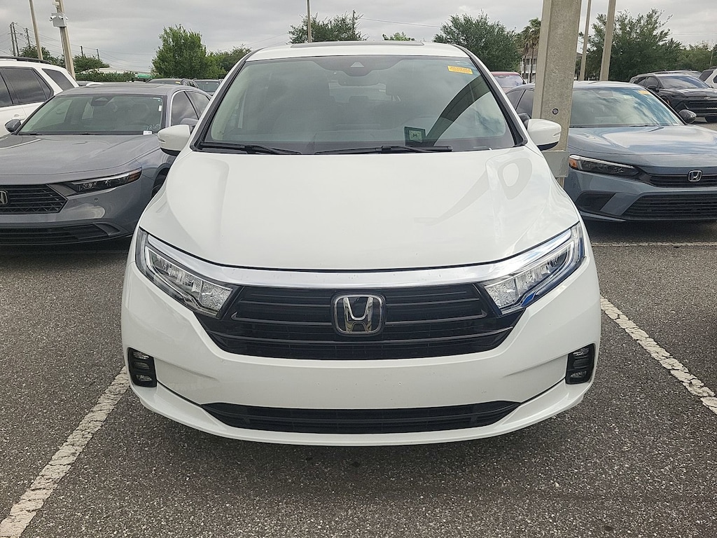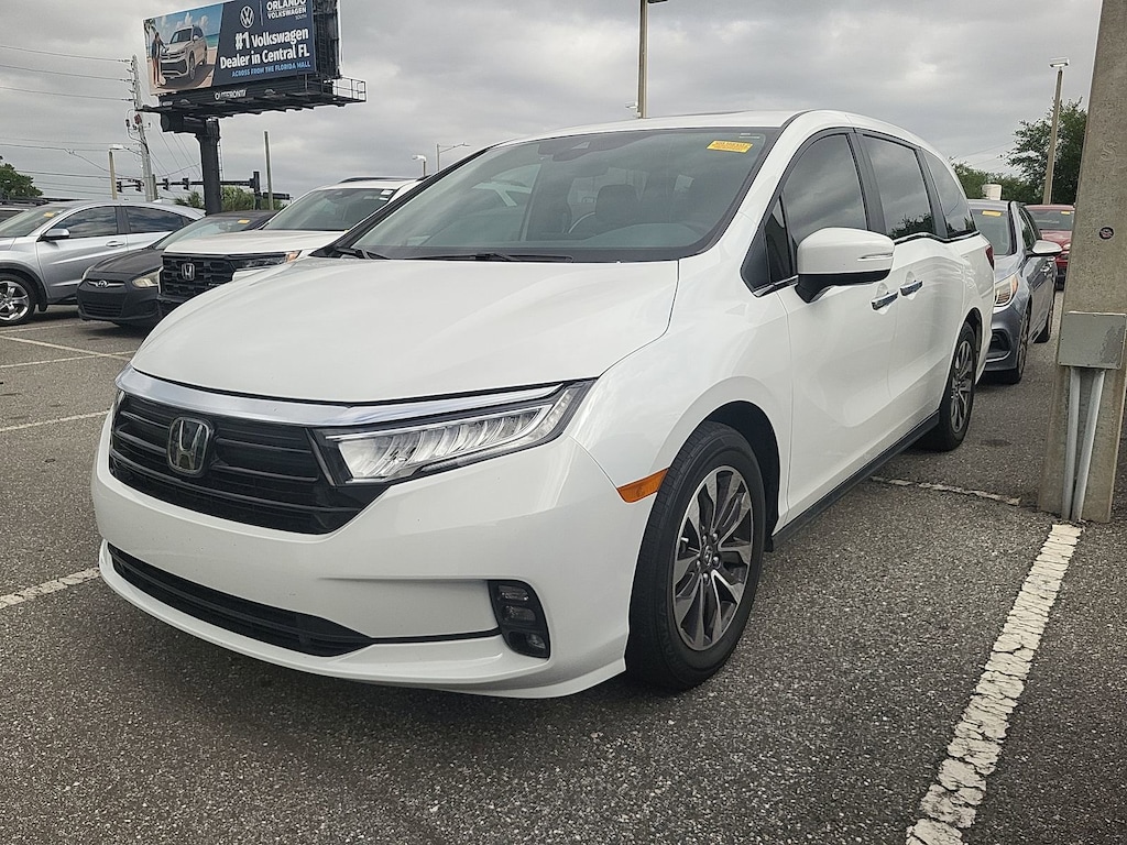 HONDA CERTIFIED, ONE OWNER, CLEAN CARFAX, APPLE CARPLAY, ANDROID AUTO, BLUETOOTH, HANDSFREE, BACKUP CAMERA, LEATHER, 3rd ROW SEATING, POWER WINDOWS, POWER LOCKS, ALLOY WHEELS, SUPER LOW MILES, LOCAL TRADE, EXCELLENT SERVICE HISTORY, COME SEE THIS TODAY!, PRICE INCLUDES ALL RECONDITIONING FEES, 4-Wheel Disc Brakes, 7 Speakers, A/V remote: CabinControl, ABS brakes, Adaptive Cruise Control: Adaptive Cruise Control (ACC) with Low-Speed Follow, Air Conditioning, AM/FM radio: SiriusXM, Anti-whiplash front head restraints, Apple CarPlay/Android Auto, Auto High-beam Headlights, Auto-dimming Rear-View mirror, Automatic temperature control, Blind Spot Information (BSI) System warning, Brake assist, Bumpers: body-color, Delay-off headlights, Driver door bin, Driver vanity mirror, Dual front impact airbags, Dual front side impact airbags, Electronic Stability Control, Exterior Parking Camera Rear, Forward collision: Collision Mitigation Braking System (CMBS) + FCW mitigation, Four wheel independent suspension, Front anti-roll bar, Front dual zone A/C, Front fog lights, Fully automatic headlights, Garage door transmitter: HomeLink, Heated door mirrors, Knee airbag, Lane departure: Lane Keeping Assist System (LKAS) active, Low tire pressure warning, Memory seat, Occupant sensing airbag, Overhead airbag, Panic alarm, Power door mirrors, Power driver seat, Power Liftgate, Power moonroof, Power steering, Power windows, Radio data system, Radio: 160-Watt AM/FM/HD/SiriusXM Audio System, Rear air conditioning, Rear anti-roll bar, Rear window defroster, Remote keyless entry, Security system, Speed control, Speed-sensing steering, Spoiler, Steering wheel mounted audio controls, Traction control, Turn signal indicator mirrors. 19/28 City/Highway MPG KBB Fair Market Range High: $32,580 CARFAX One-Owner. Clean CARFAX. Certified. 2022 Honda Odyssey EX-L **CERTIFIED** Platinum White Pearl 2022 Honda Odyssey EX-L **CERTIFIED** 4D Passenger Van FWD 10-Speed Automatic 3.5L V6 SOHC i-VTEC 24V