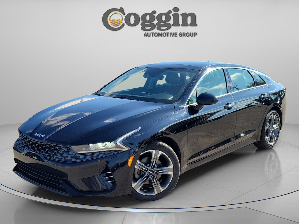 Designed to turn everyday drives into something a little more enjoyable, this 2023 Kia K5 EX FWD blends sleek midsize sedan styling with the kind of comfort and tech that fits right in whether youre cruising through Jacksonville, heading down I-95 toward Daytona Beach, or making the daily commute from Starke or Kingsland. Finished in Ebony Black with a refined Black interior, the K5 EX delivers a confident, modern feel with its turbocharged 1.6L engine and smooth 8-speed automatic transmission, giving you responsive power while still returning impressive fuel efficiency for longer drives across North Florida and South Georgia. Inside, youll appreciate the upscale touches like SynTex seating, a power drivers seat with lumbar support, heated and ventilated front seats, dual-zone automatic climate control, and a panoramic sunroof that opens the cabin up to Florida sunshine. The large touchscreen with navigation, Apple CarPlay, Android Auto, wireless phone charging, and premium connectivity keeps you seamlessly connected whether youre navigating city streets or planning a weekend escape to Tampa or Orlando. Kia Drive Wise driver-assist technologies such as blind-spot monitoring, lane keeping assist, forward collision avoidance, and rear cross-traffic alert add peace of mind in busy traffic and crowded parking lots. Stylish 18-inch alloy wheels, LED lighting, smart key with push-button start, remote start, and a smart trunk round out a package that feels equally suited for workdays and weekend getaways. If youre searching for a well-equipped used midsize sedan near Jacksonville, Tallahassee, Starke, Kingsland, or anywhere across Southern Georgia and Florida, this 2023 Kia K5 EX FWD offers standout design, advanced safety, modern technology, and everyday comfort in one sleek, fuel-efficient package, Cruise Control, Navigation System, Power moonroof, Wheels: 18 Gray Machined Finish Alloy.
