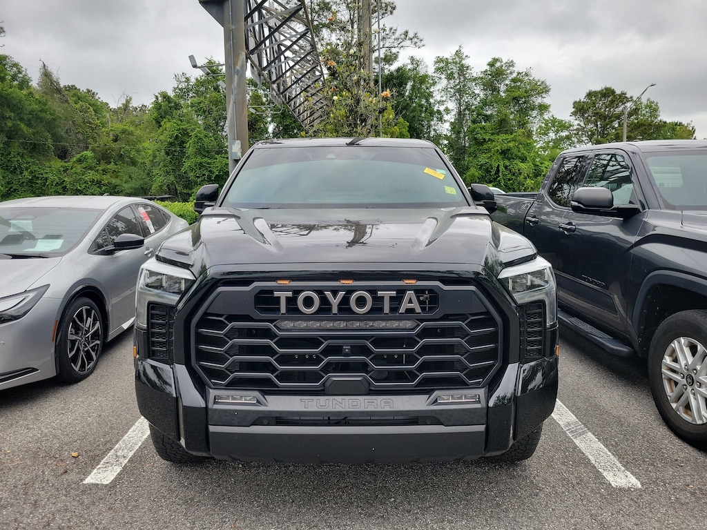 RECALL NOTICE: Some vehicles offered for sale may be subject to unrepaired manufacturer safety recalls. To determine the recall status of a vehicle, visit https://www.nhtsa.gov/recalls.Elevate Your Driving Experience with the Exceptional 2025 Toyota Tundra Hybrid TRD ProThis remarkable 2025 Toyota Tundra Hybrid TRD Pro is a true masterpiece of engineering and design, offering a captivating blend of power, efficiency, and uncompromising capability. Boasting a striking Black exterior, this Tundra Hybrid is more than just a work of art it's a testament to Toyota's commitment to innovation and performance.- **ALL WHEEL DRIVE**- **ALLOY WHEELS**- **BLUETOOTH, HANDS-FREE**- **KEYLESS ENTRY**- **KEYLESS START**- **LEATHER SEATS**- **REARVIEW CAMERA**- **SUNROOF**- **TOW PACKAGE**- Auto High-beam Headlights- Delay-off headlights- Front fog lights- Fully automatic headlights- Exterior Parking Camera RearPowered by a robust 3.4L V6 engine and a state-of-the-art 10-Speed Automatic transmission, this Tundra Hybrid delivers an impressive 20 city / 24 highway MPG, making it a true champion of fuel efficiency without sacrificing the performance you demand. With its advanced 4WD system, this truck is ready to tackle any terrain, whether you're navigating the city streets or venturing off the beaten path.Inside, the Tundra Hybrid TRD Pro pampers you with a wealth of premium features, including a premium JBL audio system, a cutting-edge navigation system, and a host of advanced safety technologies like Blind Spot Monitoring and Rear Cross-Traffic Alert. The heated and ventilated leather-trimmed seats provide unparalleled comfort, while the power-adjustable driver's seat and tilt/telescoping steering wheel ensure a perfect driving position.But the true star of the show is the Tundra Hybrid's exceptional capability. With its robust towing capacity and rugged construction, this truck is ready to take on any challenge, whether you're hauling heavy loads or exploring the great outdoors. And with the added benefit of Toyota's legendary reliability, you can rest assured that this Tundra Hybrid will be a trusted companion for years to come.Experience the ultimate in power, efficiency, and versatility with the 2025 Toyota Tundra Hybrid TRD Pro. Visit our showroom today and let us demonstrate why this remarkable truck is the perfect choice for your next adventure.